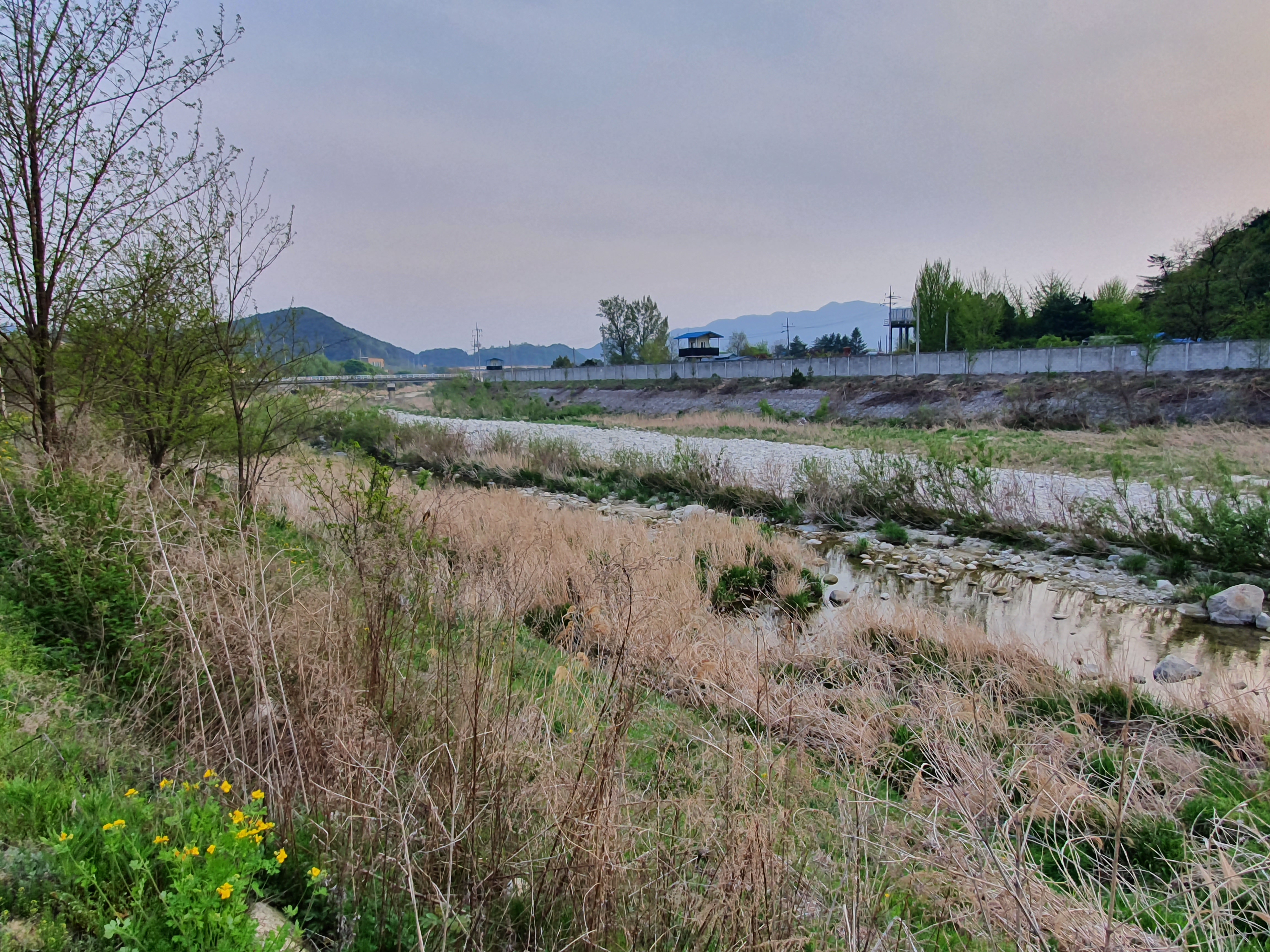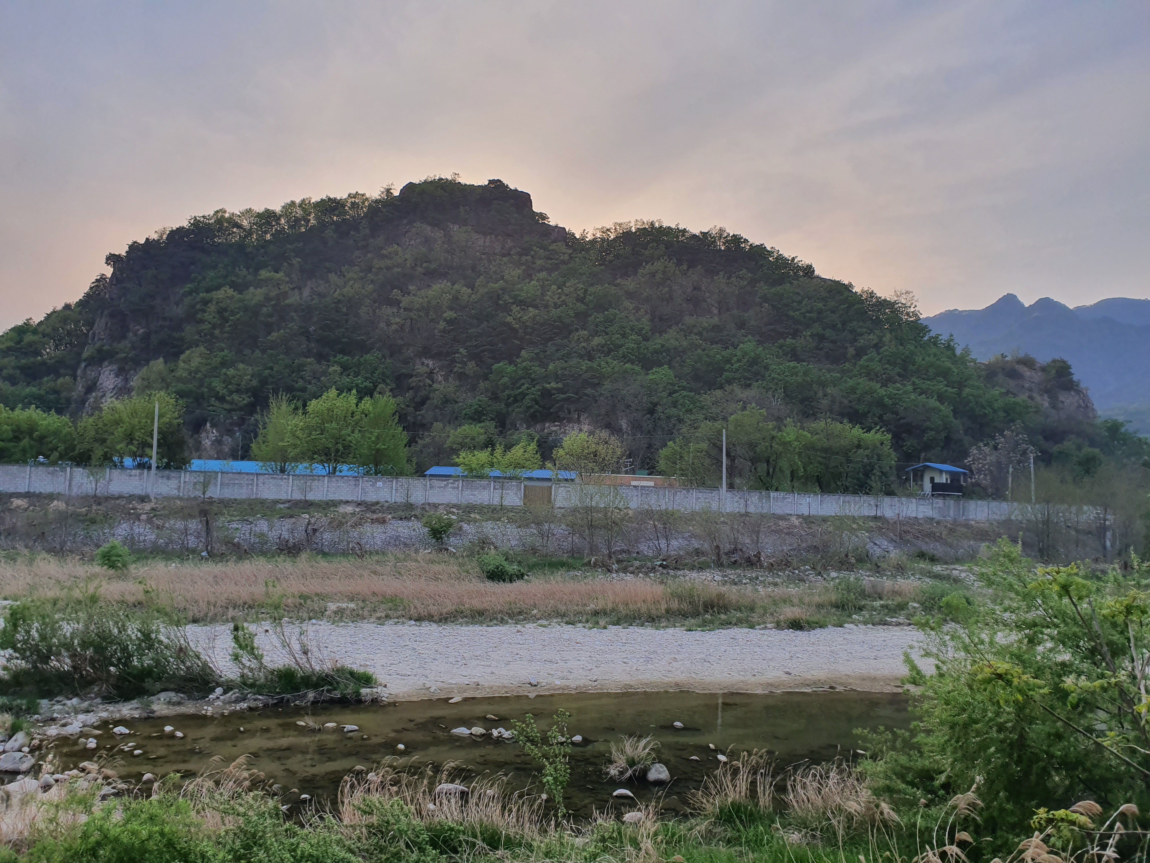캠핑장 앞쪽은 냇물이 흐르고 그 앞으로는 군부대가 ... ㅜ