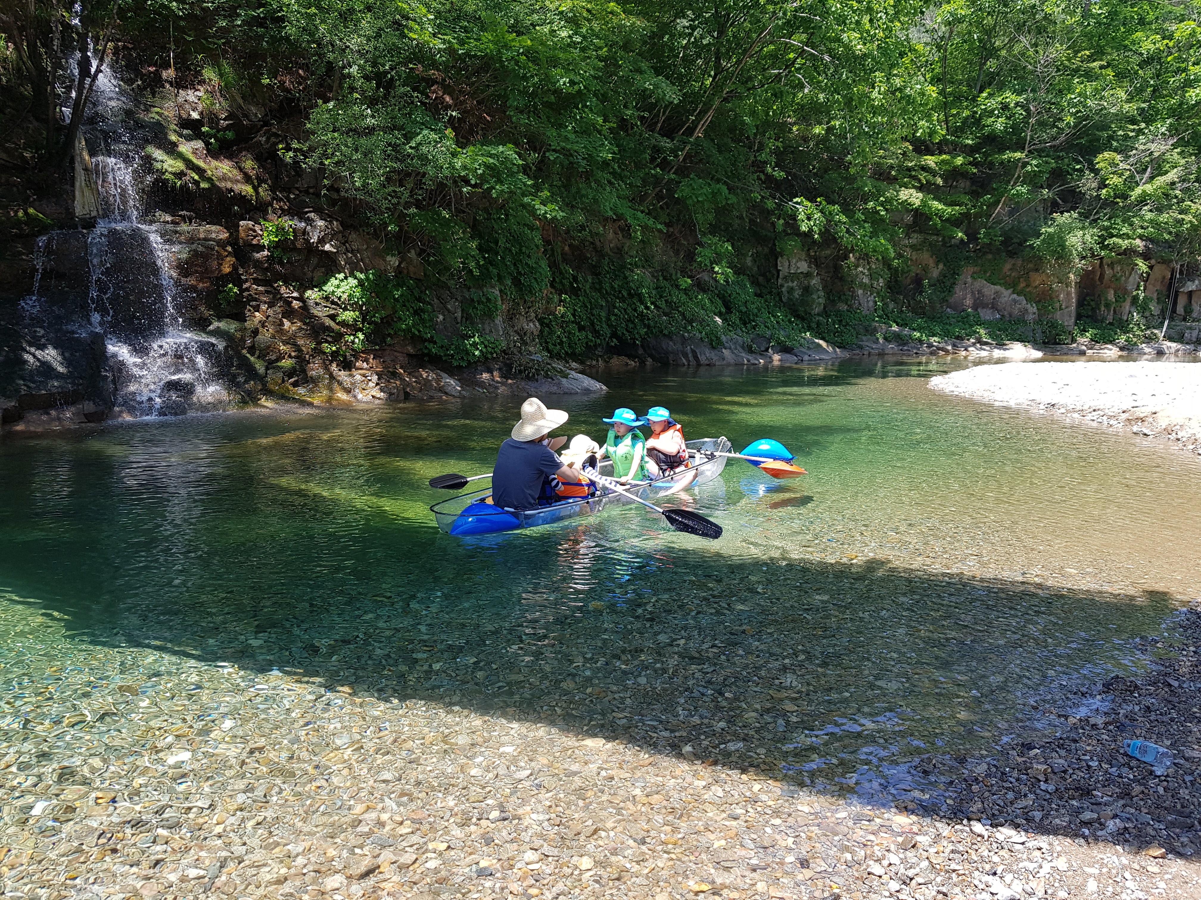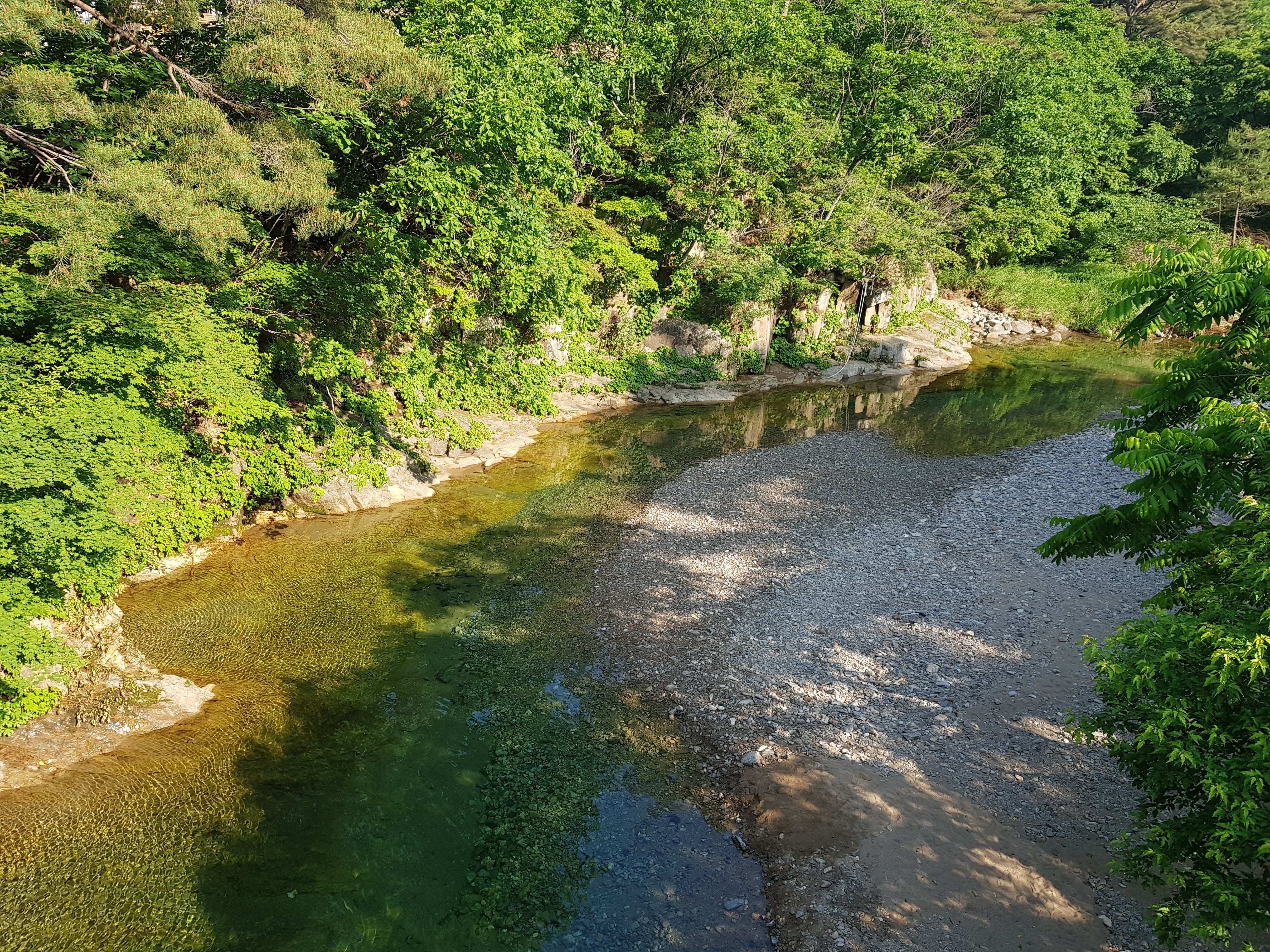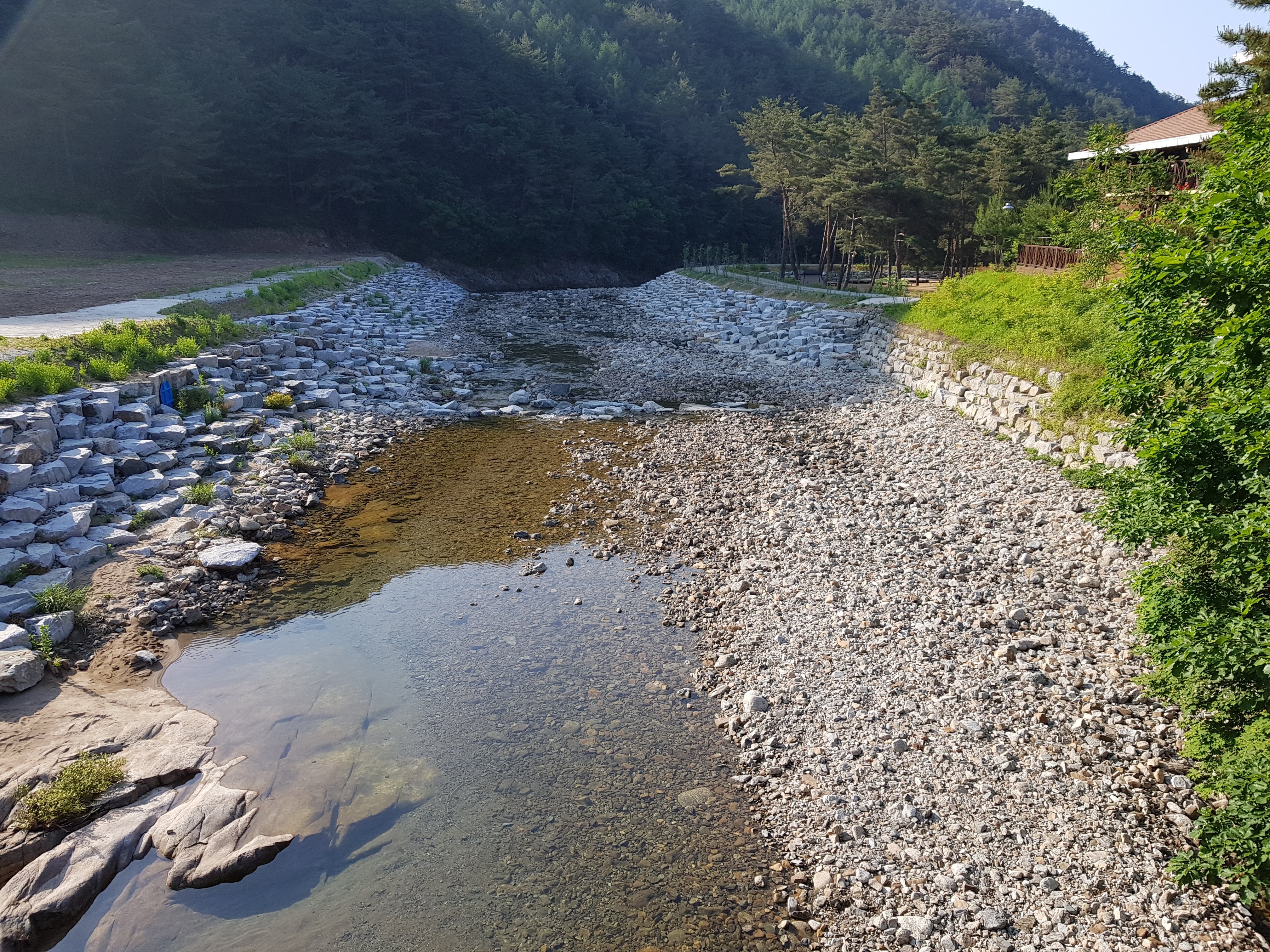 B존 건너가는 다리에위서 찍은 사진이고, 캠핑장 인접 계곡은 물고기가 많이 안 보였는데 상류 쪽으로 가면 물고기가