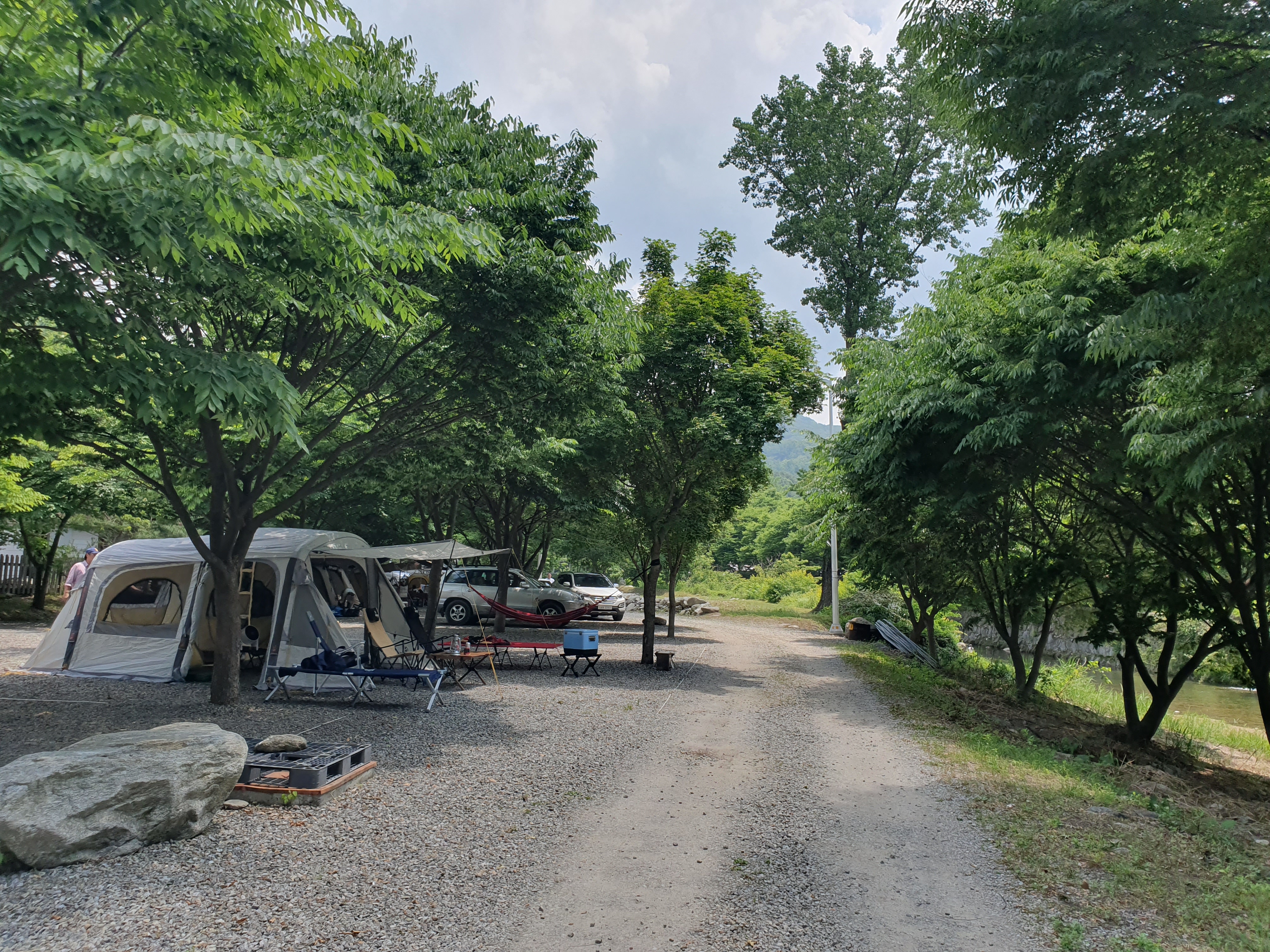 개울가에 진입이 용이하고, 상단에 비해서 사이트 밀집도는 약간 낮은 느낌입니다