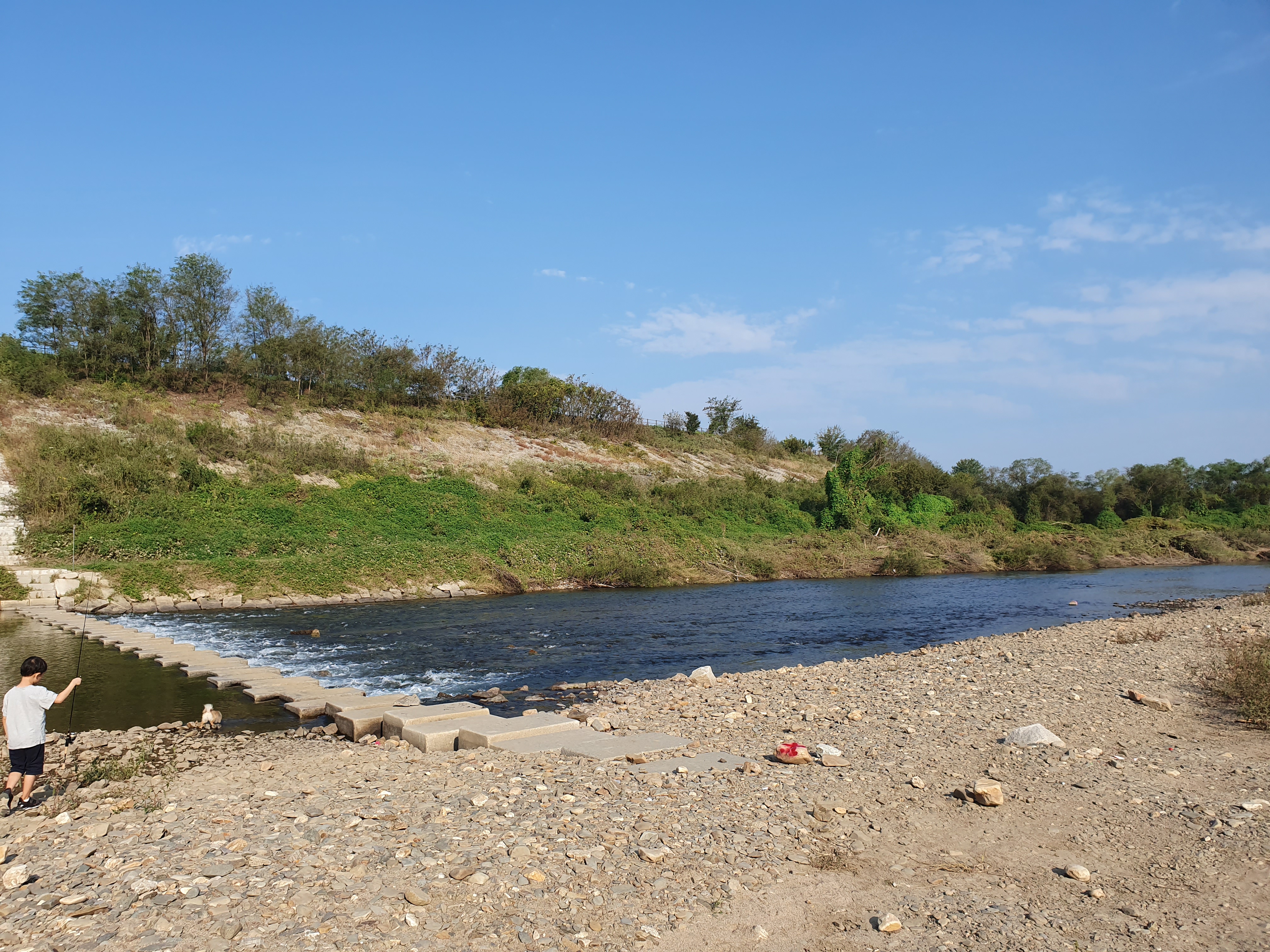 사미천 징검다리를 건너서 올라가면 산책로 나오고 멋진 풍경을 감상하실 수 있습니다.